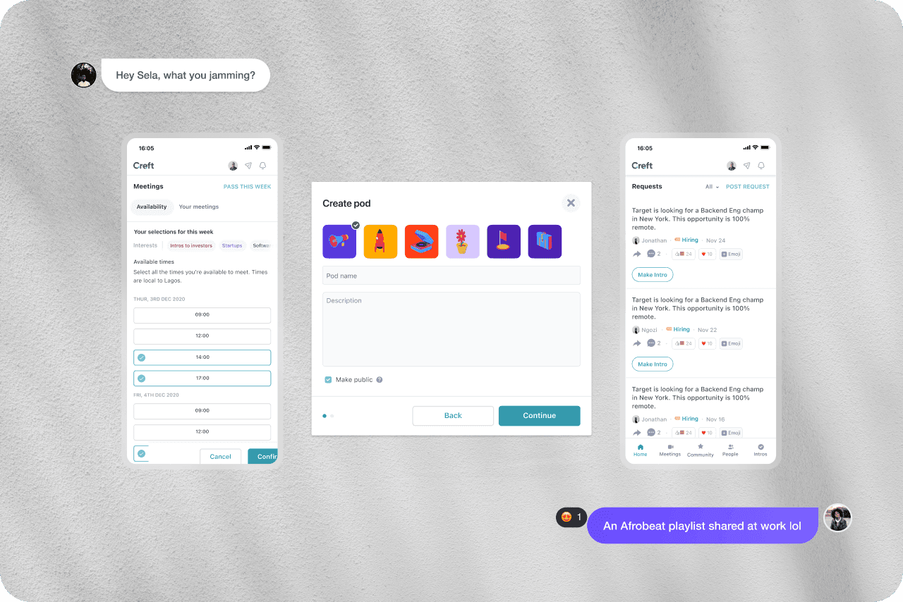 We kept it really simple; members will create a pod and wait for others to join in. We understood that most users would be tired at that time.
